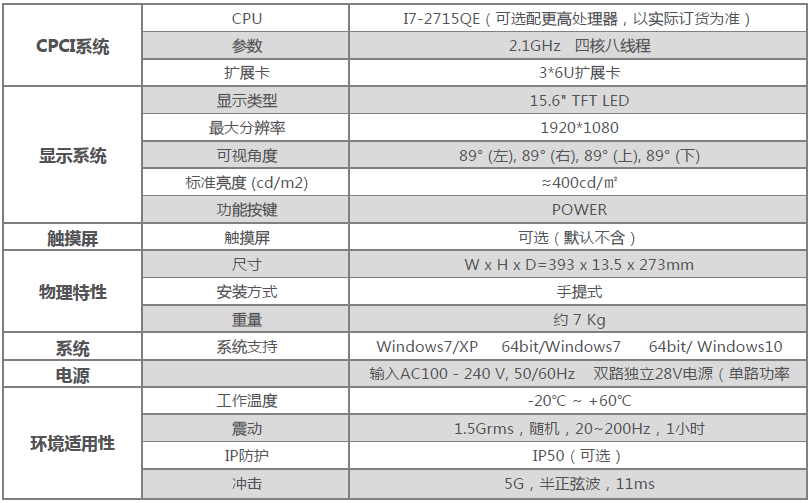 PWS-1501C便携式CPCI计算机 产品参数: